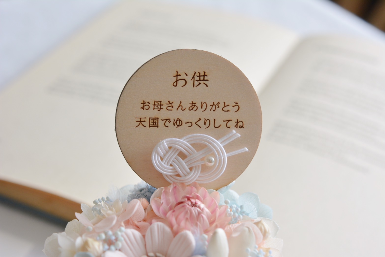お花の木製プレートには、好きな言葉を刻むことができます。ご用途に合わせてご相談くださいませ。